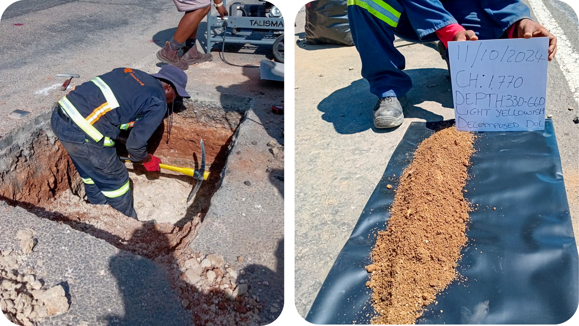 In addition to the pavement layers, the project involves the construction of culverts, V-drains, stone-pitch channels, and subsoil drainage systems to improve long-term durability.